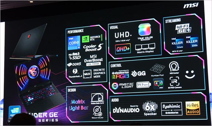 ‘The Leap to Singularity’(최고를 향한 도약)라는 슬로건을 내세운 이날 발표회에서는 ‘CES 2023’에서 혁신상을 수상한 ‘타이탄 GT77 HX’, ‘레이더 GE78 HX’, ‘스텔스 16/14 스튜디오’ 등 새로운 세대의 게이밍 노트북을 비롯하여 전문가용 초슬림 노트북 ‘크리에이터 Z 시리즈’, 1kg 미만(990g)의 초경량 비즈니스 노트북 ‘프레스티지 13 Evo’ 등 소비자의 니즈를 충족시켜 주는 다양한 제품을 발표했다.