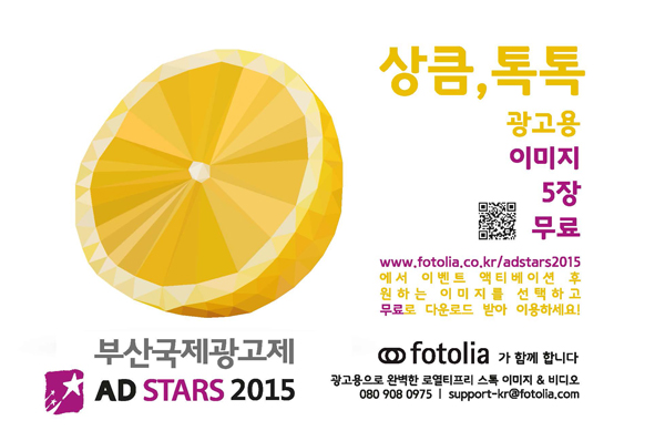 포토리아는 부산국제광고제 참가자들 대상으로 포토리아의 광고용 이미지 5장을 무료 증정하는 이벤트를 실시하며, 부산국제광고제 현장에서 무료 이용권을 받을 수 있다. 프로모션 쿠폰 활용을 위해서는 포토리아 이벤트 페이지(www.fotolia.co.kr/adstars2015)에 접속 후 원하는 이미지를 선택하여 다운로드 받아 사용하면 된다.
