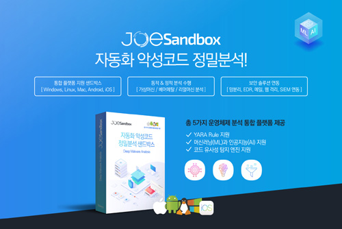 조샌드박스(Joe Sandbox)는 업계 최초로 윈도우, 리눅스, 맥, 안드로이드, iOS 등 5가지 운영 체제기반의 실행 파일 및 문서 파일 분석을 지원하는 통합 플랫폼으로서, 다양한 엔드포인트 및 네트워크 포인트 솔루션, 망 분리 네트워크 솔루션과도 연동이 가능하다. 악성코드를 수동으로 분석하기 어려운 보안 환경에서 조샌드박스는 정적에서 동적, 동적에서 하이브리드, 하이브리드에서 그래프 분석까지 모두 자동화된 심층 분석 시스템을 제공한다. 하이브리드 분석, 계측, 후킹, 하드웨어 가상화 및 에뮬레이션을 비롯한 최상의 기술들을 적용한 분석 정보를 제공한다.