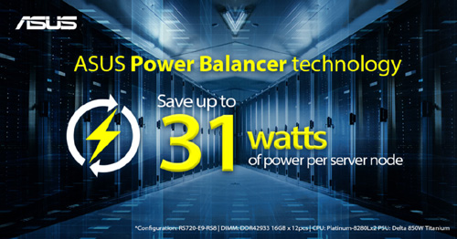 에이수스의 독점적인 기술인 파워 발란서 기술은 ASUS 서버가 실시간 모니터링을 기반으로 CPU가 요구하는 전력을 효율적으로 제공하여 유지 보수에 관련된 성능 최적화를 한단계 끌어올린다. 실질적으로 에이수스 서버는 파워 발란서 기술을 통해 각 노드당 최대 31와트 전력을 절약 시키므로 특정 워크로드 및 다수의 서버가 사용되는 환경에서도 소비전력 대비 작업을 원활하게 처리할 수 있다. 또한 전반적인 전력 소비량이 매우 줄어들기 때문에 비용을 대폭 낮출 수 있어 효율적인 운영이 가능해진다.
