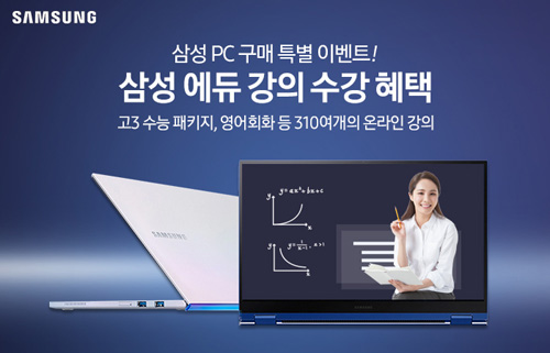 이번 행사는 제품 구매 후 삼성 혜택APP 내 삼성에듀 혜택 페이지와 삼성에듀 홈페이지 내 제품인증을 통해 등록이 가능하며, 대성마이맥의 고3·N수 수능패키지, 시원스쿨의 기초 영어회화 / 어린이 영어, 다락원의 TOEIC / OIPc / 중국어 / 일본어 어학과정, IT/자격증 강의 등 310여개의 다양한 온라인 강의 콘텐츠를 제품 등록 후 1년 동안 무료로 수강이 가능하다.