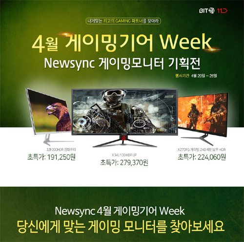 비트엠은 인기 Newsync 게이밍 모니터 11종을 대상으로 종합기획전을 개최한다.