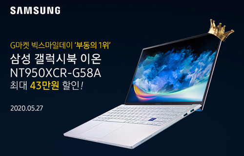 유니씨앤씨는 삼성 갤럭시북 이온 NT950XCR-G58A 모델을 대상으로 최대 43만원 추가 할인 및 푸짐한 사은품이 증정되는 ‘빅스마일데이 마지막 특가’ 이벤트를 2020년 5월 27일 진행한다.