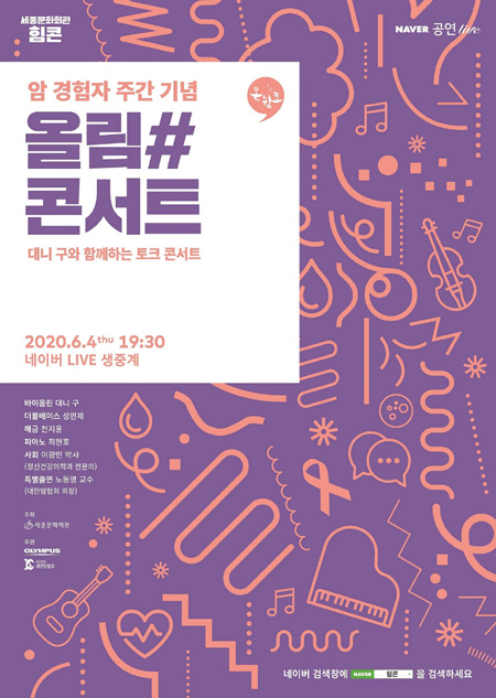 올림푸스한국은 세종문화회관, 대한암협회와 함께 오는 6월 4일 세종문화회관 체임버홀에서 암 경험자 주간을 맞아 ‘올림#콘서트’를 진행한다.