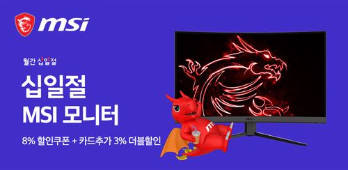 엠에스아이코리아는 월간 십일절 행사에 참여한다. 이번 7월 11번가 십일절 행사는 코로나 19 피해 극복 및 내수 활성화를 위한 대규모 소비 촉진행사인 ‘대한민국 동행 세일’ 기간과 겹쳐 의미를 더하는 가운데, 게이밍 모니터 구매 시 8%, PC 부품 구매 시 12% 선택 할인 쿠폰과 함께 신용카드에 따라 최대 3% 추가 할인 혜택이 제공된다.