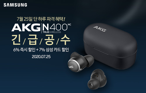 유니씨앤씨는 노이즈캔슬링 무선 이어폰 AKG N400 모델을 대상으로 최대 13% 추가할인 혜택이 제공되는 ‘긴급공수’ 이벤트를 2020년 7월 25일 진행한다.