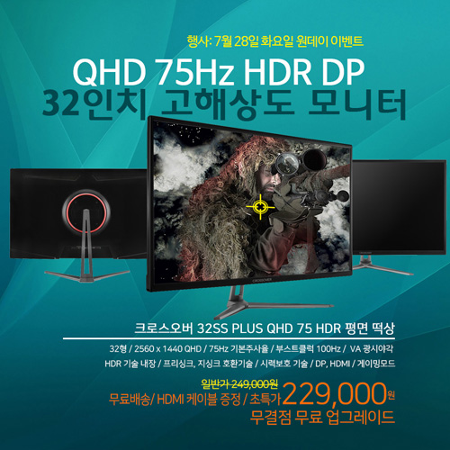 크로스오버존은 크로스오버존 대표모니터 '크로스오버 32SS PLUS QHD 75 HDR 평면 떡상 무결점’을 대상으로 특가 이벤트를 펼친다.