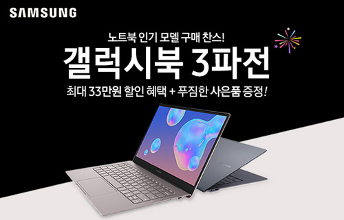 유니씨앤씨는 삼성 갤럭시북 S와 QLED 디스플레이와 터치패드 무선 배터리 공유 등 최첨단 기술이 탑재된 초경량 삼성 갤럭시북 이온, 플렉스 모델 등을 대상으로 최대 33만원 할인 혜택 및 푸짐한 사은품이 제공되는 ‘갤럭시북 3파전’ 이벤트를 2020년 9월 9일부터 9월 14일까지 진행한다.