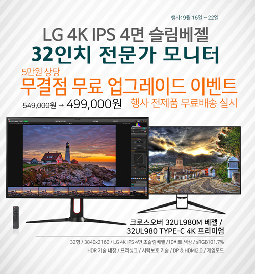 크로스오버는 32형 고해상도 4K UHD 모니터 ‘32UL980M HDR 프리미엄' 및 ‘32UL980 HDR TYPE-C 4K PREMIUM’을 대상으로 무결점 무료 업그레이드 행사를 진행한다고 밝혔다.
