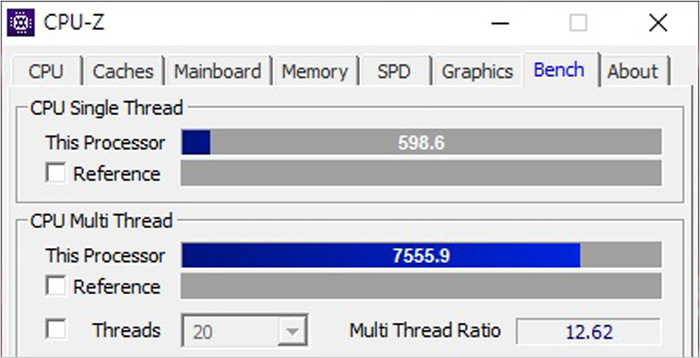직관적으로 프로세서 성능을 확인할 수 있는 CPU-Z 벤치마크 테스트 에서는 i7과 싱글값 차이가 크지 않았다. 단, 10코어 20스레드를 지원하는 모델답게 멀티 스레드 스코어에서는 상당한 차이를 보여주었다. 10세대 인텔코어 i7 과 i9 프로세서는 늘어난 코어와 스레드 만큼 보급형과 확연한 성능차를 보여주기 때문에 일반적인 작업에서 시간을 단축시킬 수 있는 것이다.