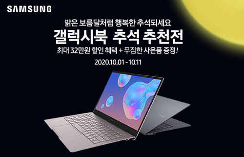 유니씨앤씨는 삼성 갤럭시북 S와 QLED 디스플레이와 터치패드 무선 배터리 공유 등 최첨단 기술이 탑재된 초경량 삼성 갤럭시북 이온, 플렉스 모델 등을 대상으로 최대 32만원 할인 혜택 및 푸짐한 사은품이 제공되는 ‘갤럭시북 추석 추천전’ 이벤트를 2020년 10월 1일부터 10월 11일까지 진행한다.