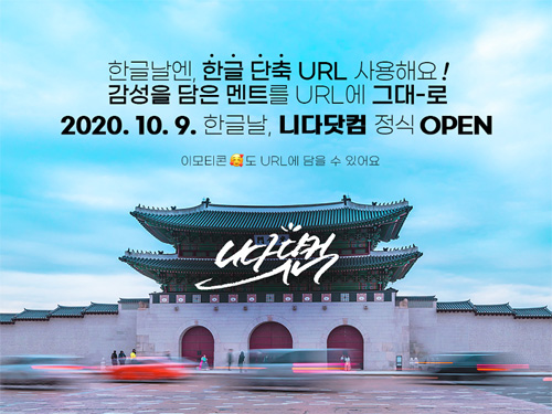 한글 단축 URL 서비스 '니다닷컴'이 한글날을 맞아 정식 서비스를 오픈한다. 니다닷컴은 쉽고 빠른 한글 단축 URL을 만들어주는 서비스다. URL을 단순 영문과 숫자 나열이 아닌 한글로 만들어 서비스 정체성과 특징을 표현할 수 있다. 예를 들어 BTS 홈페이지 주소를 'BTS입.니다.com'으로 만드는 식이다. URL만 봐도 해당 사이트 성격을 알 수 있다.