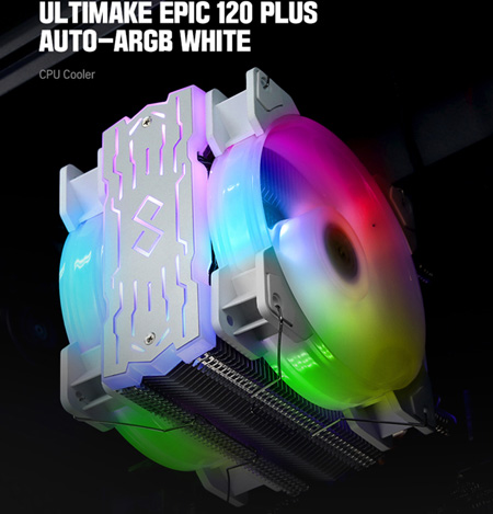 얼티메이크는 화이트 컬러의 RGB 듀얼팬 공랭 쿨러, 얼티메이크 EPIC 120 PLUS AUTO ARGB WHITE 를 정식 출시한다.