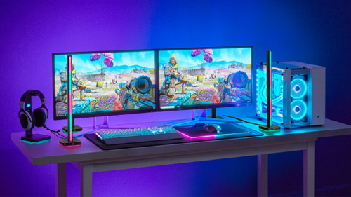 커세어는 데스크탑 환경에 다양한 RGB 앰비언트 컬러 향연을 전하는 ‘iCUE 스마트 라이팅 에코시스템’인 신제품 ‘iCUE LT100 스마트 라이팅 타워(iCUE LT100 Smart Lighting Towers)를 출시한다. 이번에 출시한 ‘LT100 스마트 라이팅 타워’는 완벽한 커스터마이징의 화려한 RGB LED가 각각 46개씩 장착된 2개의 알루미늄 타워를 제공하는 기본형의 ‘스타터키트’ 및 ‘스타터키트’에 추가 조명을 더 설치할 수 있는 ‘확장형 키트’로 선보인다.