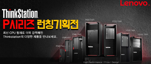 AMD 라이젠 스레드리퍼 프로를 탑재한 씽크스테이션 P620은 최대 64코어 싱글 프로세서를 지원하여 멀티스레드 워크로드에 최적화된 성능을 지원한다. 듀얼 프로세서의 씽크스테이션 P720은 12개의 메모리 슬롯과 다양한 확장 슬롯으로 고사양 작업 생산성을 극대화했다. 씽크스테이션 P920은 듀얼 프로세서와 최대 2개의 엔비디아 쿼드로 RTX 8000 그래픽카드를 지원, 가장 강력한 성능을 자랑한다.