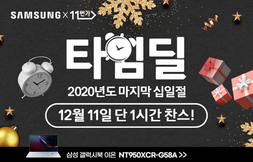유니씨앤씨는 QLED 디스플레이와 지포스 외장그래픽이 탑재된 삼성 갤럭시북 이온 NT950XCR-G58A 모델을 대상으로 최대 32만원 추가 할인 및 푸짐한 혜택이 증정되는 ‘타임딜’ 프로모션을 2020년 12월 11일 20시부터 단 1시간 동안 진행한다.