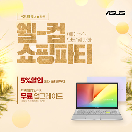 ‘웰컴 쇼핑 파티’ 프로모션은 ASUS 공식 온라인 스토어에서 진행되며, 최신 인텔 11세대 CPU를 탑재한 신제품 젠북, 비보북 등 인기 제품도 행사 제품에 포함된다. ASUS 공식 온라인 스토어에서 제품을 구매한 고객 전원에게는 최대 5만원까지 할인 가능한 5% 할인 쿠폰과 프리미엄 워런티 무료 업그레이드 혜택이 제공된다. 프리미엄 워런티는 우발적 손상 패키지(LADP)로, 키보드 침수, 화면 깨짐, 우발적 낙하 등 고객 과실로 인한 제품 손상도 보장해주는 서비스이다. 프로모션 기간은 오는 1월 17일(일)까지 진행되며, 모든 제품은 무료로 배송된다.