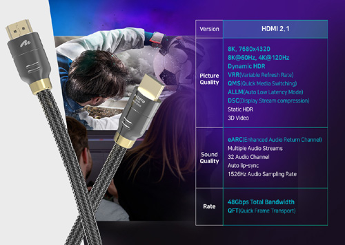 △플레이스테이션(PS)5와 엑스박스(Xbox) 시리즈, △NVDIA Geforce RTX30시리즈, AMD 라데온 RX 6000 시리즈, △8K 60Hz/4K 120Hz OLED TV, △미니 QLED 8K TV 등의 초고해상도 기기 사용자라면 초고속 HDMI케이블을 추천한다.