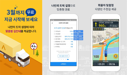 맵퍼스가 대형차 길안내에 특화된 화물차 전용내비게이션 ‘아틀란 트럭’ 앱을 출시했다.