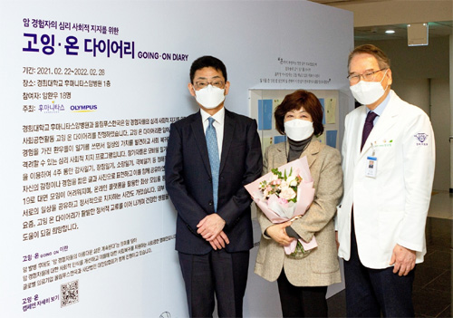 이번 전시는 지난해 11월부터 올해 1월 말까지 경희대학교 후마니타스암병원에서 진행한 고잉 온 다이어리 참가자 암 경험자 18인의 일기를 작품으로 만들어 전시한다. 개회식에는 올림푸스한국 오카다 나오키 대표, 경희대학교후마니타스암병원 정상설 원장, 참가자 대표 김지연 씨가 참석해 자리를 빛냈다. 작품 전시는 병원 1층 로비에서 내년 2월까지 약 1년 동안 진행되어 누구나 자유롭게 관람할 수 있다.