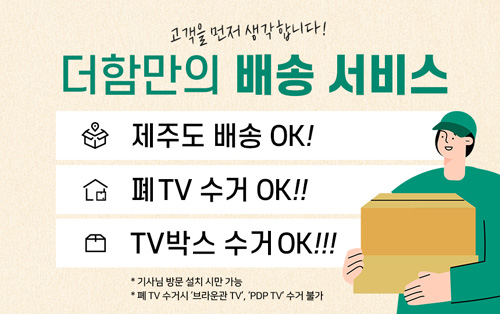 그 동안 A/S 및 배송의 문제로 판매가 되고 있지 않았던 제주도 배송이 시작되었다. 더함의 고품질 제품을 구매하고 싶었지만, 구매가 어려웠던 제주도 고객들에게는 큰 혜택이 될 것으로 보인다. 배송 뿐만 아니라 A/S도 지원될 예정이니 혹시나 하는 걱정없이 더함의 다양한 서비스를 받을 수 있다.