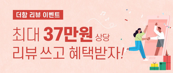 기존에는 리뷰 게시물 작성 후 이벤트에 응모하면 20만원 상당의 경품을 제공하였으나, 업그레이드된 이벤트를 통해 37만원 상당의 경품을 제공받을 수 있다. 리뷰 이벤트는 판매페이지 상품평, 블로그, 유튜브, 인스타그램, 네이버카페 등 다양한 플랫폼에 리뷰를 작성 후 더함 공식 카카오톡 채널을 통해 응모하면 된다.