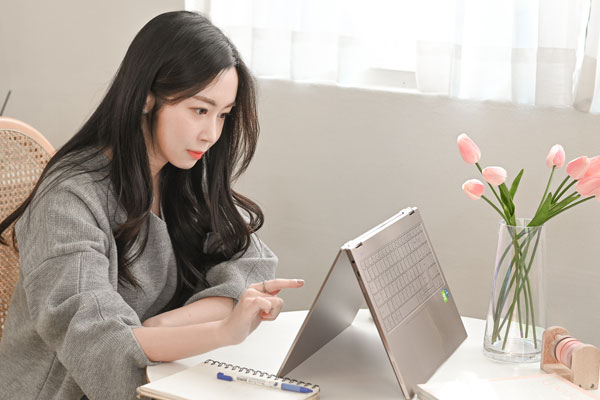 ‘갤럭시북 플렉스2 NT950QDZ-G51A’ 모델은 최신 11세대 인텔 프로세서와 MX450 그래픽 칩셋 조합으로 16GB 메모리, NVMe SSD 256GB가 탑재되었으며, 펜의 움직임까지 인식하는 빌트인 ‘스마트 S펜’과 360도 회전이 가능한 터치 디스플레이가 탑재되어 다양한 모드와 편의기능이 제공되는 투인원(2in1) 노트북이다.