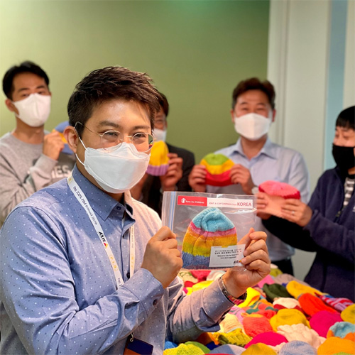 엑시스커뮤니케이션즈는 오늘, 임직원들이 국제 구호개발 비정부기구 '세이브더칠드런'이 진행하는 '신생아살리기 모자뜨기 캠페인'에 동참했다.