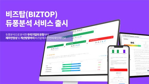 비즈탑은 듀퐁분석 서비스 론칭을 통해 재무제표에 대한 전문성이 부족하더라도 쉽게 기업의 현 상황을 파악하고 개선방향을 수립할 수 있도록 돕는다. 또한, 기업신용등급 개선을 위한 목표매출액, 목표 영입이익 등의 다음해 재무수치를 안내하는 “재무목표”, 결산을 확정하기 전 적정 영업이익, 당기순이익 등을 안내하는 “가결산” 등의 기업분석 서비스와의 시너지로 기업에서 쉬운 재무제표 관리를 지원한다.