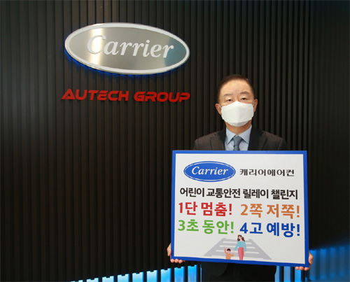 캐리어에어컨은 강성희 회장이 ‘어린이 교통안전 릴레이 챌린지’ 캠페인에 동참했다고 밝혔다.