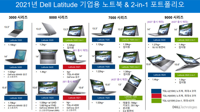 이와함께 2021년 기업용 노트북 레티튜드 제품들도 공개했다. 레티튜드 노트북은 New ExpressConnect, Wi-Fi 6/6E, 4G LTE and 5G, 스마트 안테 등 업무환경에 최적화된 연결성을 높였으며 이미지 및 비디오 선명도를 향상시키는 Latitude TNR 기술을 적용해 뛰어난 카메라 품질을 경험할 수 있다.