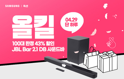 유니씨앤씨는 JBL 창립 75주년을 기념하여 JBL Bar 2.1 Deep Bass 블루투스 사운드바를 대상으로 100대 한정 정가 대비 43% 할인 혜택이 제공되는 ‘올킬’ 프로모션을 옥션에서 2021년 4월 29일 하룻동안 진행한다.