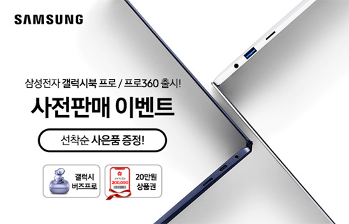 이벤트 제품은 고화질 AMOLED 디스플레이와 초슬림, 초경량으로 뛰어난 휴대성을 자랑하는 삼성 갤럭시북 프로 / 프로360 신모델을 대상으로 하며 모바일 상품권 20만원권, 갤럭시 버즈 프로, 문화상품권 등 푸짐한 사은품이 증정되는 사전판매 이벤트를 2021년 4월 29일부터 5월 10일까지 선착순 한정으로 진행한다.