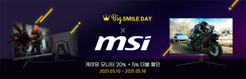 2021년 5월 10일부터 18일까지 열리는 이번 기획전에서는, 최대 30만 원 한도의 20% 할인 쿠폰이 조건 없이 3일 간격으로 제공되며, 스마일클럽 회원의 경우 동일한 혜택을 한번 더 받을 수 있다. 특히, MSI 게이밍 모니터 최초로 IPS 패널을 탑재한 ‘MSI 옵틱스 G271’은 20% 선택 할인쿠폰 및 5% 중복할인 쿠폰을 적용하여 23만원 대에 구매가 가능하며, 최근 고해상도 게이밍 모니터 트렌드에 맞춰 수요가 높은 27인치 WQHD 사양의 ‘MSI 옵틱스 MAG274QRF’는 종전 판매가 대비 10만 원 이상 할인된 35만원 대에 구매할 수 있다.