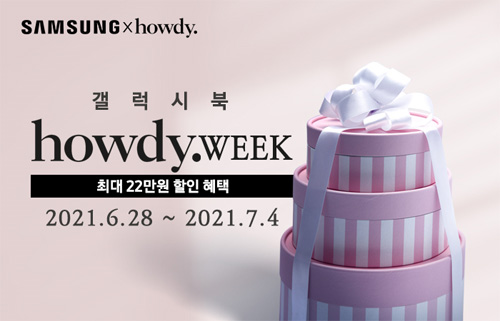 유니씨앤씨는 AMOLED 디스플레이와 초슬림 초경량 디자인으로 뛰어난 휴대성을 자랑하는 삼성 갤럭시북 프로, 프로360 신제품을 대상으로 최대 22만원 할인 혜택 및 푸짐한 사은품이 증정되는 ‘갤럭시북 하우디위크’ 이벤트를 2021년 6월 28일부터 7월 4일까지 하우디를 단독 진행한다.