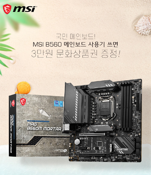 MSI는 7월 중 MSI B560 메인보드를 구매자를 대상으로 최대 8만원에 달하는 경품을 증정하는 구매 이벤트 및 사용기 이벤트를 진행한다.