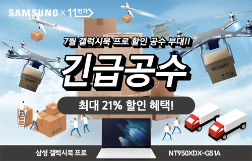유니씨앤씨는 AMOLED 디스플레이와 지포스 외장그래픽이 탑재된 삼성 갤럭시북 프로 NT950XDX-G51A 모델을 대상으로 최대 34만원 추가 할인과 함께 푸짐한 혜택이 주어지는 ‘긴급공수’ 프로모션을 2021년 7월 23일 단 하루 동안 11번가를 통하여 단독 진행한다.
