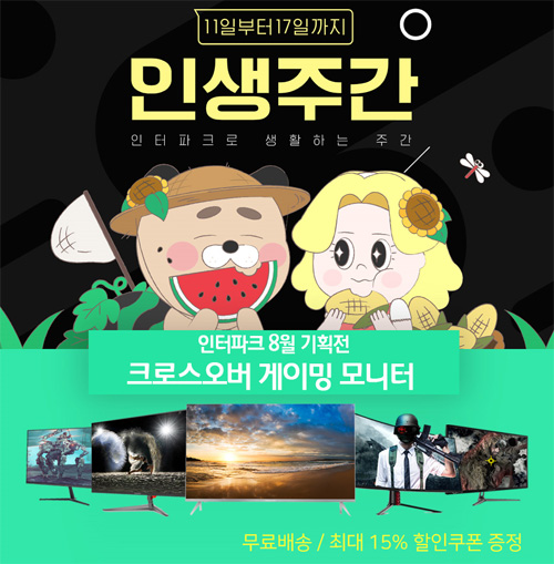 크로스오버는 인기 게이밍, 고해상도 및 대화면 모니터들을 대상으로 8월 인터파크 인생주간 특가전을 펼친다.