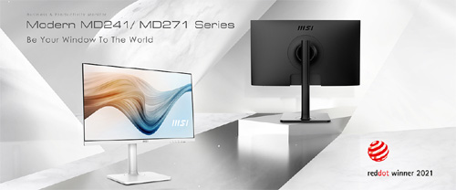 유려한 디자인 역시 ‘MSI 모던 MD241P’의 장점이다. 중세시대 모던 스타일에 영감을 받은 이번 신제품은, MD271 시리즈와 함께 세계적인 권위를 자랑하는 독일의 레드닷 디자인 어워즈 2021에 수상하였다. 심플함과 기능성 중심의 디자인은 모던 시리즈 모니터의 대표적인 특징으로, 다양한 사용 환경에서도 잘 어우러진다.