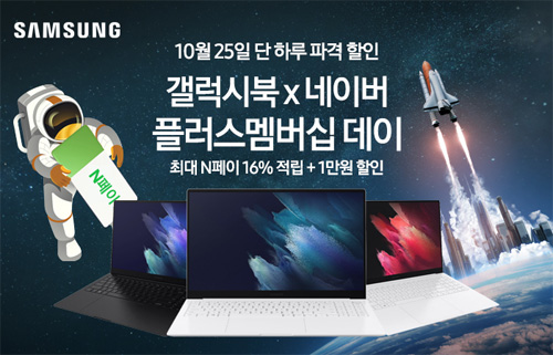 유니씨앤씨는 삼성 갤럭시북 프로, 프로360 인기모델을 대상으로 네이버페이 최대 16% 및 네이버 플러스멤버십 회원 대상으로 1만원 추가 적립과 푸짐한 사은품이 증정되는 ‘갤럭시북 x 네이버 멤버십 데이’ 기획전을 2021년 10월 25일 단 하루 네이버 스마트스토어를 통하여 단독 진행한다.