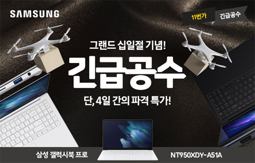 유니씨앤씨는 그랜드 십일절을 맞아 15.6인치 AMOLED 디스플레이 탑재와 초슬림 초경량 디자인으로 뛰어난 휴대성을 자랑하는 삼성 갤럭시북 프로 NT950XDY-A51A 모델을 대상으로 최대 43만원 중복 할인과 함께 푸짐한 혜택이 주어지는 ‘긴급공수’ 프로모션을 2021년 11월 4일부터 11월 7일까지 단 4일 동안 11번가를 통하여 단독 진행한다.