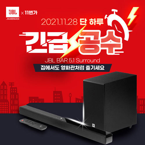 유니씨앤씨는 최적의 감상 환경을 제공하는 JBL BAR 5.1 Surround 사운드바를 대상으로 파격적인 할인 혜택이 제공되는 ‘긴급공수’ 프로모션을 11번가를 통해 2021년 11월 28일 단 하룻동안 진행한다.