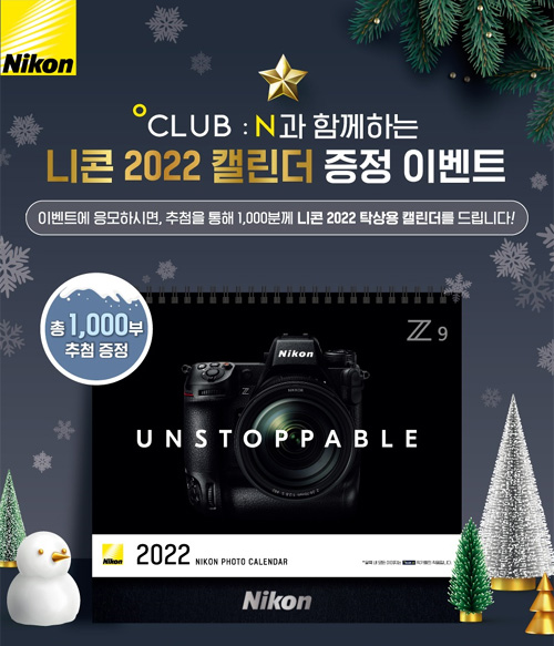 니콘은 연말연시를 맞이해 오늘부터 이번 달 14일까지 ‘2022 니콘 캘린더’ 증정 이벤트를 실시한다.