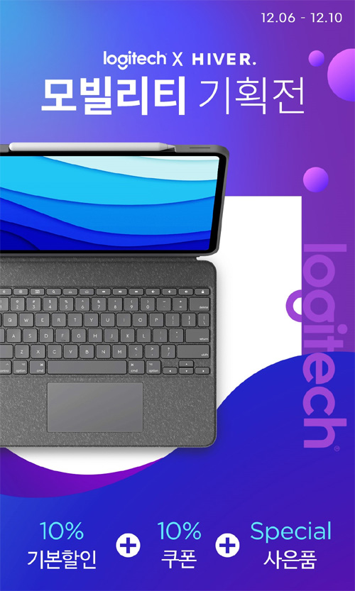 에스라이즈는 HIVER ‘로지텍 모빌리티 기획전’을 통해 오는 12월 6일부터 10일까지 온라인 최저가 프로모션을 진행한다고 전했다. 이번 프로모션에서는 다양한 로지텍의 애플 서드파티 제품이 참여하여 기본할인(10%)에 추가 쿠폰할인(10%)이 더해져 높은 빌드 퀄리티의 제품을 합리적 가격에 고려 할 수 있는 좋은 기회가 될 것으로 예상된다.