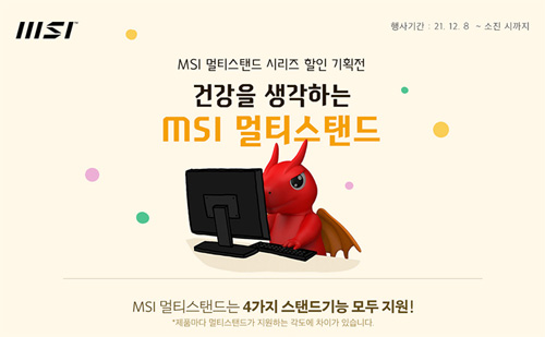 오는 2021년 12월 8일부터 진행되는 이번 행사에서는 MSI 모던&프로 시리즈 라인업 가운데 멀티 스탠드를 탑재 제품을 대상으로 최대 약 6만 원 상당의 할인 혜택과 함께 무결점 제품을 구매할 경우 무료 배송까지 지원된다.