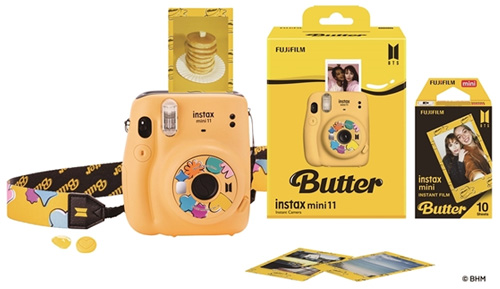 ‘인스탁스 미니11 BTS 버터 버전’은 17일부터 국내 한정수량 정식 판매된다. 한국후지필름 공식몰, 카카오 선물하기 채널과 더셀피룸 동탄점, 수지점에서 구매할 수 있다. BTS 버터 버전의 즉석카메라 미니11은 13만 3천 원, 미니필름 1만 4천 원이며, 미니11과 미니필름 세트 구매 시 14만 원이다.