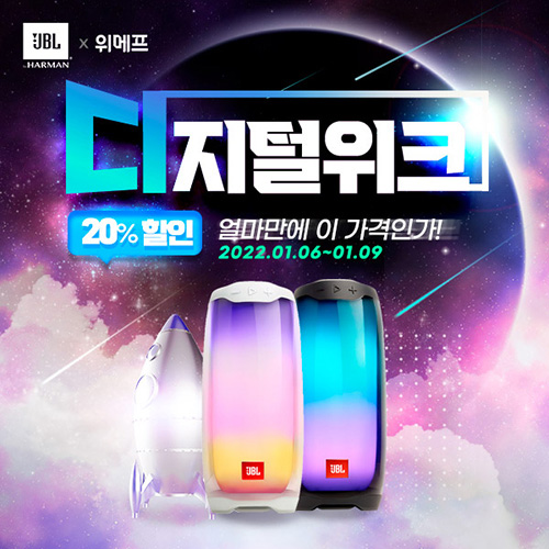 유니씨앤씨는 화려하면서 은은한 무드등 스타일의 블루투스 스피커 JBL PULSE4 제품을 대상으로 파격적인 할인 혜택이 제공되는 ‘디지털위크’를 위메프에서 1월 6일부터 9일까지 4일 동안 진행한다.