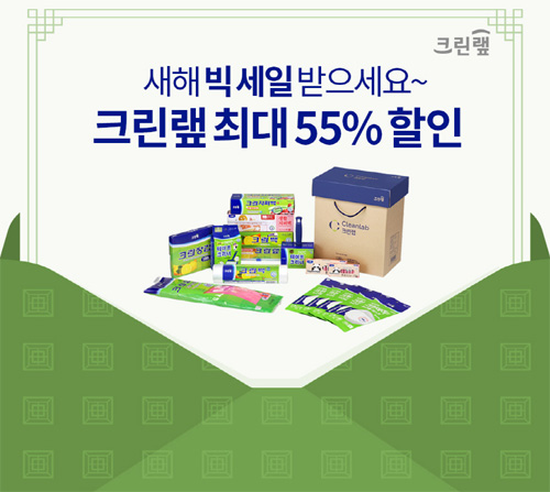 필수 주방·생활용품을 실속 있게 구성한 ‘설 맞이 알뜰세트’는 △크린백(중) △크린장갑 △슬라이딩 지퍼백(대용량) △이중지퍼백(대) 등으로 구성돼, 54% 할인된 가격에 구매할 수 있다.  또 △위생세트(손소독제, 블루코튼 핸드워시, 그린올리브 핸드워시) △크린장갑(400매) △기모 고무장갑 △하이퍼맥스 건전지(AA/AAA) 등도 할인된 가격에 구매 가능하다.