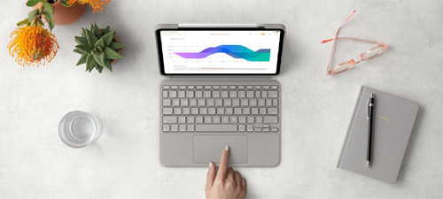 로지텍(Logitech)의 콤보 터치(COMBO TOUCH)는 트랙패드가 탑재돼 아이패드(Apple iPad)를 노트북처럼 활용할 수 있는 키보드 케이스로 높은 마감 완성도와 다재다능한 성능으로 차별화를 보여준다. 스마트 커넥터로 번거로운 충전 및 블루투스 페어링 없이 누구나 손쉽게 사용 가능하며 타이핑에 최적화된 키보드가 기본 장착되어 손쉽게 문서작업을 할 수 있다.