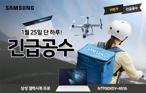 유니씨앤씨는 다가오는 설날을 맞아 15.6인치 AMOLED 디스플레이 탑재와 초슬림 초경량 디자인으로 뛰어난 휴대성을 자랑하는 삼성 갤럭시북 프로 NT950XDY-A51A 모델을 대상으로 최대 29만원 중복 할인과 함께 푸짐한 혜택이 주어지는 ‘긴급공수’ 프로모션을 2022년 1월 25일 단 하루 동안 11번가를 통하여 단독 진행한다.